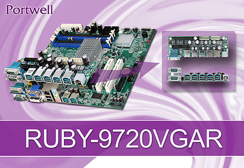 除了上述多種優勢之外,RUBY-9720VGAR支援DDR2 800/677 Mhz兩種規格,並提供四組插槽供記憶體使用,最高可擴充至16 GB;其所支援的雙通道技術更能發揮記憶體之最大效能。為滿足多樣化的應用,RUBY-9720VGAR更具備了VGA及DVI二種顯示介面、六組SATA介面、二組12V Power COM埠和二組5V/12V Power COM埠、四組USB埠和二組12V Power USB埠;主要插槽支援一組ADD2插槽、一組PCI Express X 4插槽、二組PCI插槽。若客戶需求更多Power COM埠和Power USB埠,可再搭配一組擴充板,內含Portwell, Inc., a worldwide leading innovator in the Industrial PC (IPC) field has developed a new motherboard with the latest Intel® platform for embedded. The Portwell RUBY-9720 (Micro-ATX form factor), built with the 45nm Intel® Core™ 2 Quad processor Q9400 and Intel® Q45 Express chipset, can provide the ideal solution for multiple applications such as POS, ATM, Kiosk, Gaming and Digital Signage.